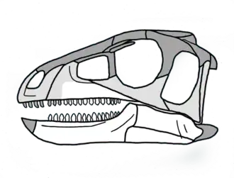 | Reconstruction of the skull, white bones are known, light grey bones were known from heavily eroded impressions | |