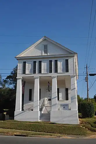 Pittsboro Masonic Lodge, also known as Columbus Lodge No. 102, is a historic Masonic Lodge located at Pittsboro, Chatham County, North Carolina. It was built in 1838, and is a two-story, Greek Revival style frame building. In 1846, it was enlarged by the addition of the distinctive pedimented second-story overhang carried on heavy square pillars. It is one of the oldest still-functioning Masonic halls in North Carolina.[2]