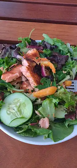 A Pittsburgh salad is a layered salad, often composed of lettuce, vegetables, grilled meat, shredded cheese, ranch dressing, and most notably, french fries.[1][2][3] It is a regional dish from the Western Pennsylvania area, although it can be seen in other places around the United States.[1][2][4]