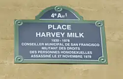 ![]() The Place Harvey Milk, in Paris, Le Marais | |