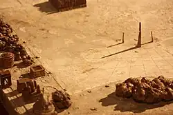 The model serves as an educational tool for detailed presentations and for exhibitions aimed at the general public outside school hours. Documents on the buildings are projected simultaneously with their illumination on the model.[146] The model is no longer used as a teaching aid for urban planning, as Lacoste had intended.[147] Françoise Lecocq notes the presence of Astérix and Obélix figurines in the Grand Circus arena.[148] The model, which has been continuously exhibited and maintained since 1950, underwent renovation in 2003-2004 during the "From Pompeii to Rome" exhibition.[82]