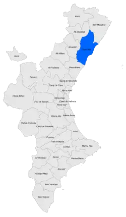 Plana Alta (Valencian: [ˈplana ˈalta]; Spanish: [ˈplana ˈalta]) is a comarca in the province of Castellón in the Valencian Community, Spain. The largest town in the comarca is Castellón de la Plana, which is also the capital and largest town in the province.