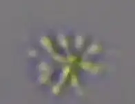 Microscopy image of Planctomyces bekefii, showing how its stalk-like structures connect cells into a conglomerate.