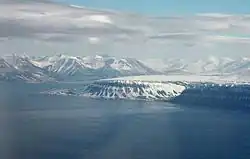 Platåberget is a mountain in Nordenskiöld Land on the island of Spitsbergen in Svalbard, Norway. It is 464 meters (1,522 ft) tall and has a distinct plateau shape, for which it is named. It is bordered to the west by the Bjørndalen valley and the Fuglefjella bird cliffs,[1] to the east by the Blomsterdalen mountain and to the north by Hotellneset and Adventfjorden.[2] The mountain is a few kilometers from Longyearbyen and is next to Svalbard Airport, Longyear. It is the site of Svalbard Satellite Station and Svalbard Global Seed Vault.