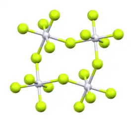 Its structure consists of a tetramer, very similar to that of ruthenium pentafluoride. Within the tetramers, each Pt adopts octahedral molecular geometry, with two bridging fluoride ligands.[2]