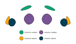 The clypeal height is 3x the diameter of the AME. All of the eyes are roughly the same size, although the lateral eyes may be slightly smaller. The AME are separated by half their diameter, and the PME are separated by at least their diameter.[2]