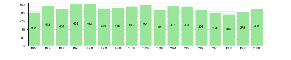 Pleigne has a population (as of December 2020) of 349.[7] As of 2008, 2.6% of the population are resident foreign nationals.[8] Over the last 10 years (2000–2010) the population has changed at a rate of 0%. Migration accounted for -3.6%, while births and deaths accounted for 2.8%.[9]