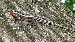 ![Head, showing two enlarged postlabial scales, diagnostic for this species compared to P. laticeps[36][37]](./_assets_/Eumeces_fasciatusPCCA20060326-2806A.jpg)