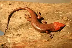 The broad-headed skink or broadhead skink (Plestiodon laticeps) is species of lizard, endemic to the southeastern United States.[1] The broadhead skink occurs in sympatry with the five-lined skink (Plestiodon fasciatus) and Southeastern five-lined skink (Plestiodon inexpectatus) in forest of the Southeastern United States. All three species are phenotypically similar throughout much of their development and were considered a single species prior to the mid-1930s.[3]