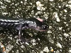 The southern gray-cheeked salamander (Plethodon metcalfi) is a species of salamander in the family Plethodontidae endemic to the area where North Carolina, South Carolina, and Georgia adjoin each other in the southeastern United States. The species has a known altitudinal range of 256 to 1,295 m in the mountains of the region.[1] Where their ranges overlap, it hybridizes with P. jordani and P. teyahalee.[1] Its natural habitat is temperate forests.