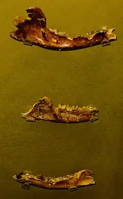 Plioviverrops is an extinct genus of hyaenids that were native to Europe throughout the Miocene and Early Pliocene. Plioviverrops is unique among most hyaenids in its gradual development towards more hypocarnivorous dentition as opposed to most hyaenids which evolved to have hypercarnivorous dentition.[1][2] As P. orbignyi had especially reduced and simplified dentition, it has been proposed that P. orbignyi may be ancestral to the genus Proteles, including the modern aardwolf.[2] Plioviverrops may be a paraphyletic group.[1]