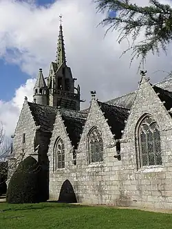 The church in the Plougonven parish close was built between 1507 and 1523 by Philippe Beaumanoir and dedicated to Saint Yves. The chevet was modified in 1702. On the night of 1 May 1930, the church was badly damaged by fire and only the walls and the bell tower survived. In 1933. the church was restored. It was listed on 19 December 1913.[3][4]