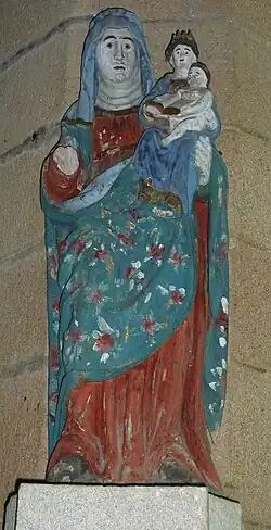The church contains several old statues. On the north side of the church there is a pietà and statues of Saint Barbara, Saint Joseph and John the Baptist and on the south side statues of Saint Yves and Francis of Assisi as well as a study of a seated Saint Anne carrying the Virgin Mary who in turn carries the baby Jesus.[3]