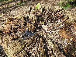A plucking post is a raised structure such as a tree stump which is used regularly by a bird of prey to dismember its prey, removing feathers and various other inedible parts before eating it.[1]