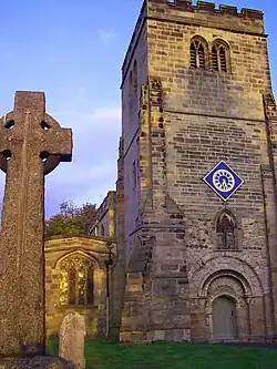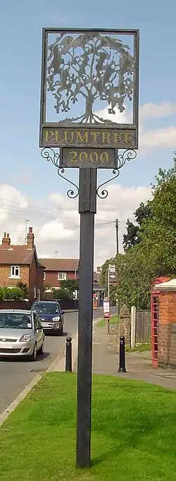 Plumtree is a village and civil parish in the borough of Rushcliffe, Nottinghamshire. At the time of the 2001 census it had a population of 221,[1] increasing to 246 at the 2011 census,[2] and 259 at the 2021 census.[3] It is situated 5 miles south east of Nottingham, between the villages of Tollerton and Keyworth. Some of the farming land around the village is owned by the Duchy of Cornwall (Prince Charles, the Prince of Wales). The parish church of St Mary has a Norman tower on Saxon foundations, which were found when the tower was rebuilt in 1906. The nave is of 13th-century date. The north aisle was rebuilt and extended with stone from Nottingham's medieval Trent Bridge in 1873.[4] Edward Hagarty Parry (1855–1931), an association footballer who captained Old Carthusians F.C. when they won the 1881 FA Cup Final against Old Etonians, is buried in the churchyard.[5]
