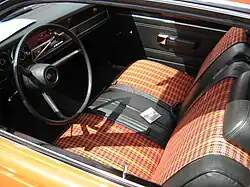 For 1971, only small changes were made to the Duster. The "Valiant" fender badges and "Plymouth" grille logotype were deleted. A new trim package was released, called the Duster Twister. The Twister package presented the appearance of the Duster 340, but came only with the base I6 or 318 V8. The Twister's appearance package included special side stripes that mimicked the Duster 340 Wedge stripes, a matte-black hood, and the 340's special shark-tooth grille. A nonfunctional dual hood scoop and rear spoiler appearance package were available, as were high-back bucket seats and dual exhaust.