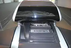 The Slingshot features a mid-mounted, 2.2L DOHC inline-four engine, with twin cams, 16 valves, and an intercooled turbocharger. The engine was rated at 225 HP and 225 lb/ft. of torque.[3] The engine is located behind the canopy, in a semi-exposed module.