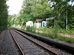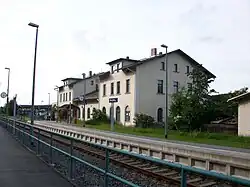 Until 2004, the platform consisted of two parts that were separated by a road. The southern part was fundamentally renovated in the summer of 2004 and the northern part was demolished. The entrance building of 1877 was demolished in 2005 and replaced by a simple passenger shelter.[5]