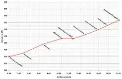 Simplified height profile of the route