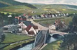 View from Oberneuschönberg towards Olbernhau with the bridge over the Flöha in Olbernhau-Grünthal in the foreground (around 1900)