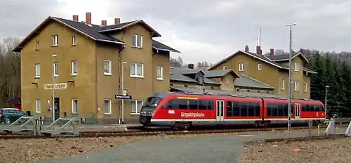 ![]() Erzgebirgsbahn DMU in front of the entrance building | |||||