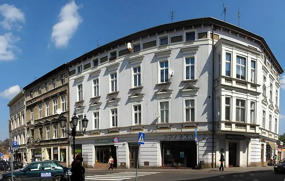 This corner house has been rebuilt in 1883[7] on a design by Józef Święcicki and Anton Hoffmann, giving it a second storey. In 1895–1896, the third floor was added thanks to a design by Karl Bergner, with a large front shop giving onto the street. At the beginning of the 20th century, in an adjacent building was located the municipal police station.[1]