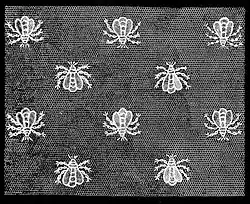 The manufacture of Alençon lace had greatly declined even before the Revolution, and was almost extinct when the patronage of Napoleon restored its prosperity. On his marriage with the Empress Marie Louise, among other orders executed for him was a bed furniture—tester, curtains, coverlet, and pillow-cases, of great beauty and richness. The pattern represented the arms of the empire surrounded by bees.[5]