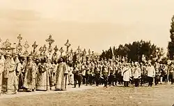 In 1648, the city became the base of a distinguished regiment of Ukrainian Cossacks, and served as a Cossack stronghold during the Khmelnytsky Uprising.[6] In 1650, to commemorate a victory of the Cossack Host over the Polish army at the Poltavka River, the Metropolitan of Kyiv, Sylvester Kossov, ordered the establishment of the Holy Cross Exaltation Monastery in Poltava. The project was financed by a number of prominent local residents, including Martyn Pushkar, Ivan Iskra, Ivan Kramar and many others.[6]