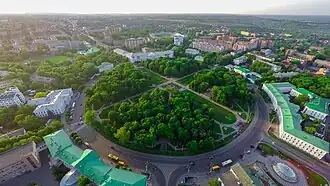 By 1770, Poltava had several brick factories, a regimental doctor, and a pharmacy; that same year the city conducted four fairs.[6] In 1775 it became a city of Novorossiysk Governorate, guarded by the 8th Company of the Dnieper Pike Regiment headquartered in Kobeliaky.[6] In 1775 Poltava's Holy Cross Exaltation Monastery became the seat of bishops of the newly created Eparchy (Diocese) of Slaviansk and Kherson. This large new diocese included the lands of the Novorossiya Governorate and the Azov Governorate north of the Black Sea.[9][10]