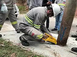 The Polux technology was developed in the early 90s by Professor Jean-Luc Sandoz, following on from the Sylvatest, at the initial request of EDF, which had the dual problem of the safety and lifespan of their poles.[5] In 2003, the technology was presented at the 17th International Congress on Electrical Distribution Networks in Barcelona.[6] In 2017, a report by Orange's CGT insisted on the danger of unmaintained poles and demonstrated, through several large-scale comparative tests, the scientific contribution of Polux technology to increasing the safety of personnel climbing poles, drawing on the experience of Enedis.[7] It works with Picus software, which uses data consisting of local densitometry measurements at the ground line and hygroscopic measurements.[8][9][10] The Polux technology continues to be developed at the CBS-Lifteam Research and Development Centre in Switzerland.[11][12] The 5th version enables faster data collection and processing, with a miniaturised tool and the Picus application downloadable to smartphones.[13][14] Polux technology is used in a number of countries, including the United States, Canada, European Union, Africa and Asia.[15][16][17]
