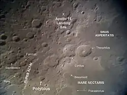 By convention these features are identified on lunar maps by placing the letter on the side of the crater midpoint that is closest to Polybius.