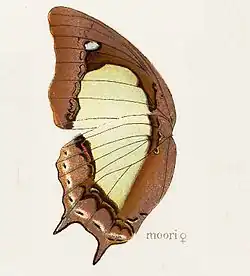 Polyura moori, the Malayan nawab, is a butterfly found in Asia that belongs to the rajahs and nawabs group (subfamily Charaxinae) of the brush-footed butterflies (family Nymphalidae).