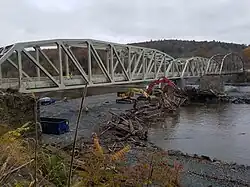 In October 2015, a dump truck carrying stone dust lost its brakes coming down the hill directly in front of the bridge; it crossed the bridge and crashed. The stress of the accident accelerated the replacement of the bridge. The replacement bridge was built about 50 feet (15 m) upstream from the original, and although modernized with more robust framing, retained the characteristic trusses. Demolition of the old bridge entered the final phase on November 6, 2018. The project was completed in November 2018.[19][20]