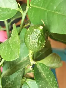 7. ^ Curk, Franck; Ollitrault, Frédérique; Garcia-Lor, Andres; Luro, François; Navarro, Luis; Ollitrault, Patrick (2016). "Phylogenetic origin of limes and lemons revealed by cytoplasmic and nuclear markers". Annals of Botany. 11 (4): 565–583. doi:10.1093/aob/mcw005. PMC 4817432. PMID 26944784.