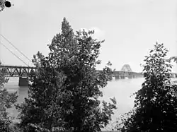 The Honoré Mercier Bridge (French Pont Honoré-Mercier) in Quebec, Canada, connects the Montreal borough of LaSalle on the Island of Montreal with the Mohawk reserve of Kahnawake and the suburb of Châteauguay on the south shore of the Saint Lawrence River.[2] It is the most direct southerly route from the island of Montreal toward the US border. It carries Route 138, originally Route 4. It is 1.361 km (0.846 mi) in length and contains four steel trusses on its first section. The height of the bridge varies from 12.44 m (40.8 ft) to 33.38 m (109.5 ft) with the highest sections located over the St. Lawrence Seaway. The bridge is named after former premier of Quebec Honoré Mercier.
