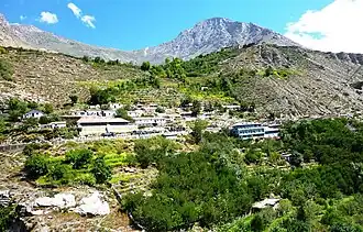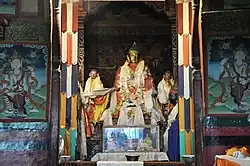 There is an ancient temple, the Lotsaba-bai-lha-khang, dedicated to Shakyamuni or Buddha and attributed to the translator (or Lotsaba), Rinchen Zangpo (958–1055).[4] The shrine has wooden columns supporting a high ceiling. It has murals and a painted door from the period of Rinchen Zangpo (10th to 11th century), though they are in a poor state of preservation.[5]