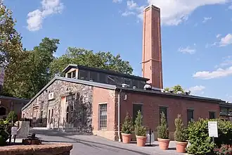 Poole and Hunt Company Buildings refers to a complex of buildings that once housed an ironworks— consisting of a foundry, machine shop, blacksmith shop, erecting shop, and other structures, which were located in the Woodberry section of northwest Baltimore, Maryland, United States.[2] The buildings, made chiefly of brick and fieldstone, occupied portions of a 20-acre (81,000 m2 ) site. They were constructed beginning in 1853 and enlarged periodically as the business of manufacturing iron-based parts and machinery expanded. [Poole and Hunt refers to the partners Robert Poole (1818-1903) and German H. Hunt (1828-1907).] In 1973, although the buildings had been converted to other uses, they remained intact and that year were added to the National Register of Historic Places.[3] In 1995, a major fire destroyed the machine shop, damaged parts of other buildings, and stopped further activity in the balance of the site. After 2000, real estate developers purchased the former industrial site and converted the buildings into commercial and residential uses.[4] The complex is now known as Clipper Mill.[5]