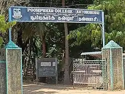 Poompuhar College is situated on the bank of River Cauveri at Poompuhar-Melaiyur which is located 5 km away from the Bay of Bengal. Poompuhar was the capital of the great Chola Kingdom, during the ancient time, it was connected with Greece and Rome. The Hindu Religious and Charitable Endowment Admn. Department of the Government of Tamil Nadu established this college in 1964.