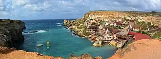 Popeye Village, also known as Sweethaven Village, is a purpose-built film set village that has been converted into a small attraction fun park, consisting of a collection of rustic and ramshackle wooden buildings. It is located at Prajjet Bay/Anchor Bay, 3 km (2 mi) from the village core of Mellieħa, Malta.