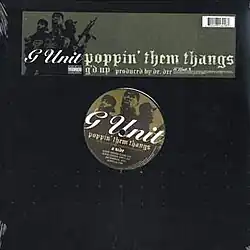 "Poppin' Them Thangs" is a song recorded by G-Unit and produced by Dr. Dre and Scott Storch. It was released in November 2003 through Interscope Records and 50 Cent's G-Unit Records as the second single from their debut album, Beg for Mercy. The first verse of the song is rapped by 50 Cent, followed by Lloyd Banks, and the final verse is rapped by Young Buck.