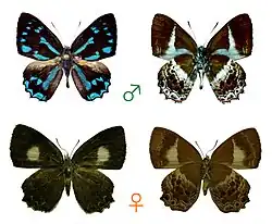 3. ^ a b c d e Savela, Markku (26 August 2016). "Simiskina phalena (Hewitson, 1874)". Lepidoptera and Some Other Life Forms. Retrieved 14 January 2020.