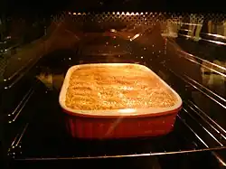 The main ingredients are mashed carrots, mixed with boiled rice or barley, and liquid (usually milk or cream). Butter and eggs may be mixed into the mash, which may also be flavoured with sugar, salt, white pepper and grated nutmeg. The mash is put in a casserole dish and baked in the oven. The carrots need not necessarily be boiled before baking: they can be grated and mixed raw with the other ingredients. Readymade porkkanalaatikko is also sold in Finnish food stores around the Christmas season, as well as in parts of Sweden with a large ethnically Finnish population.