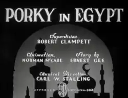Porky in Egypt is a 1938 Warner Bros. Looney Tunes cartoon directed by Bob Clampett.[2] The short was released on November 5, 1938, and stars Porky Pig.[3]