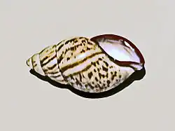 | Shell of Porphyrobaphe iostoma from Ecuador, on display at the Museo Civico di Storia Naturale di Milano | |