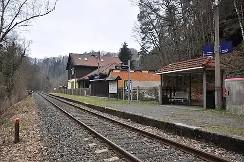 Porschdorf (German: Haltepunkt Porschdorf) is a railway station in the village of Porschdorf in the municipality of Bad Schandau, Saxony, Germany. The station is served by one train service, operated by DB Regio in cooperation with České dráhy: the National Park Railway. This service connects Děčín and Rumburk via Bad Schandau and Sebnitz.[1]