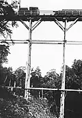 The main line used four large wooden viaducts built around 1925. The Percy Burn Viaduct is 125 m long and 36 m high, and was specified for the transport of the 80 t Lidgerwood steam winch, which had been imported from the United States as well as the heavy load of logging trains. During its construction, Australian hard wood was used, because it has a higher strength and durability than local timber. The trusses of the Sand Hill Viaduct consisted of round hard wood trunks, which were surrounded by less durable sap wood. The other viaducts were made from sawn timber, of which the sap wood had been removed.[4]