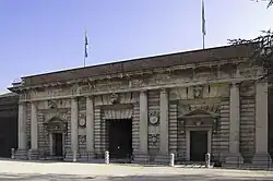 The robust Doric columns give the structure elegance and convey strength. The site previously had a medieval portal, called the Palio gate because it was used during a race.[1]