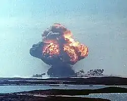 The tests were performed with 18 inch (3.2 mm) spheres of radioactive lanthanum, equal to about 100 curies (3.7 TBq) and later 1,000 Ci (37 TBq), located in the center of a simulated nuclear device. The explosive lenses were designed primarily using this series of tests. Some 254 tests were conducted between September 1944 and March 1962. In his history of the Los Alamos project, David Hawkins wrote: “RaLa became the most important single experiment affecting the final bomb design”. (Full article...)