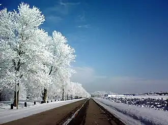 M-28 in Schoolcraft County, Michigan, a 27-mile (43 km) segment of "straight as an arrow" highway.