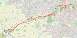 At 18 acres (7.2 ha), Porter Clough is the smallest of the five parks.[1] Long but narrow, and for the most part with steep wooded sides up the valley, its south-western end extends 4.3 miles (7 km) from the city centre, to join up with the Peak District.[1]